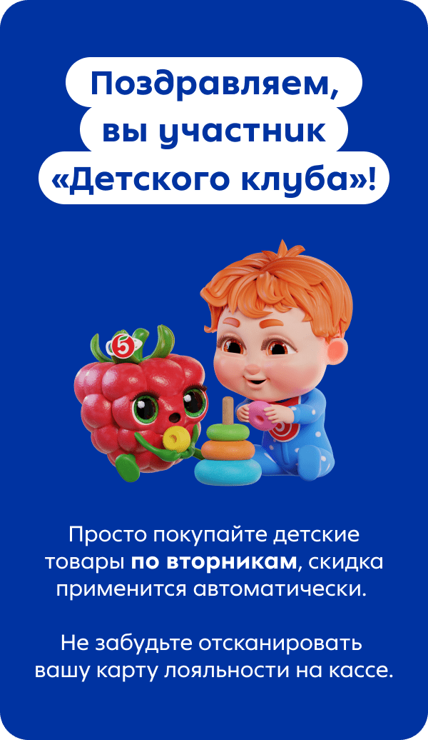 Карта программы лояльности позволяет вам экономить, получать кешбэк за покупки и персональные предложения, которые подбираются специально для вас. Не забывайте сканировать карту лояльности при каждой покупке, чтобы воспользоваться персональным предложением.